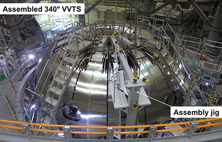 The 340° vacuum vessel (VV) torus, whose assembly began in May 2014, has been completed, and the assembly of the vacuum vessel thermal shields (VVTSs) has been started. Accordingly, a facility tour was offered to the press at the Naka Fusion Institute on 3 February 2016.