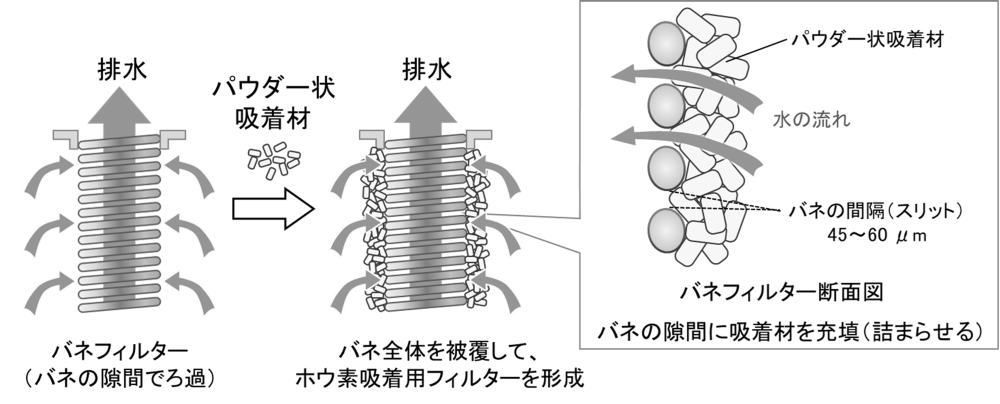 図1 吸着材とバネフィルターを組み合わせたホウ素除去技術の概要